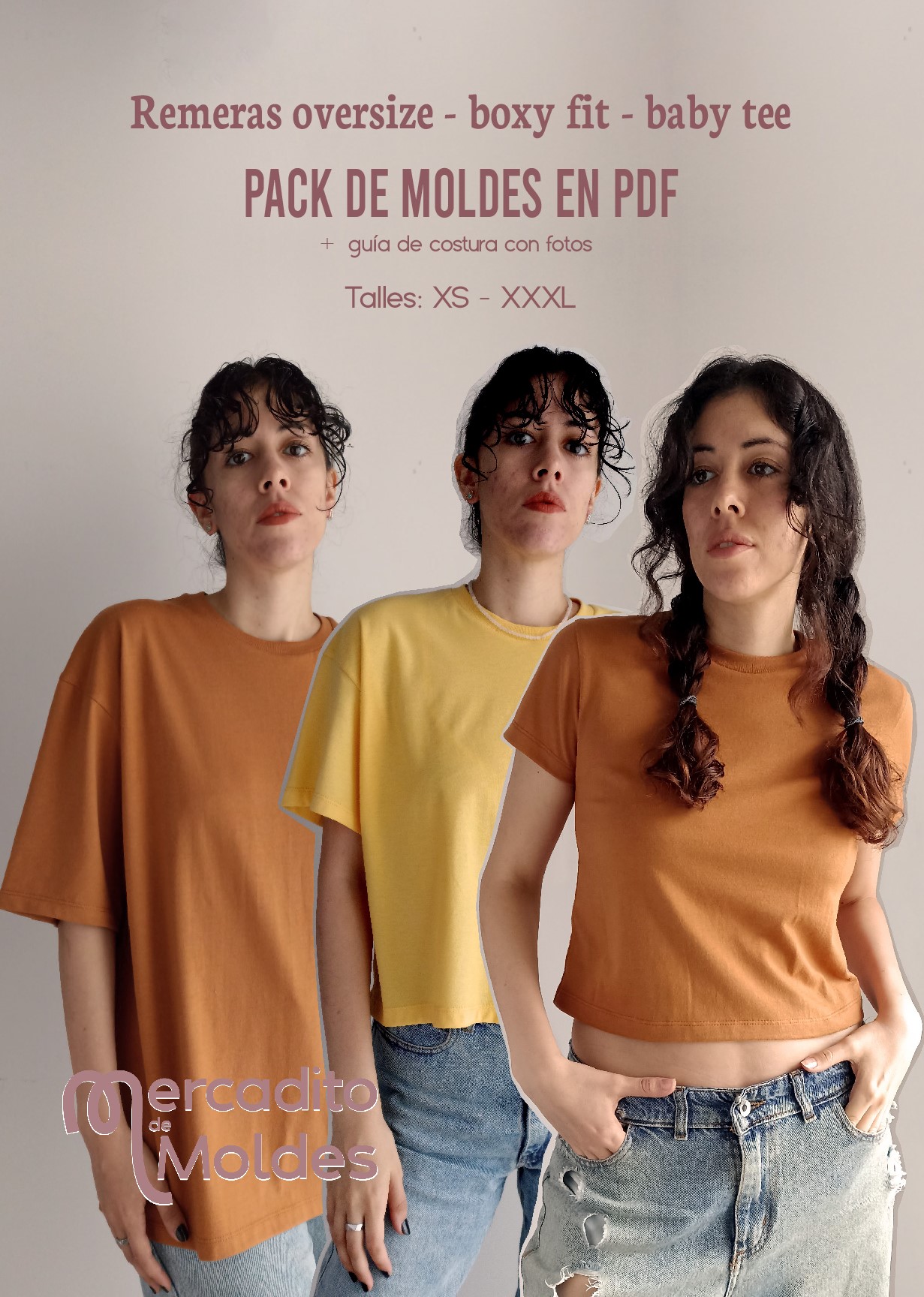 Molde en PDF + guía de costura – Pack de talles XS al XXXL